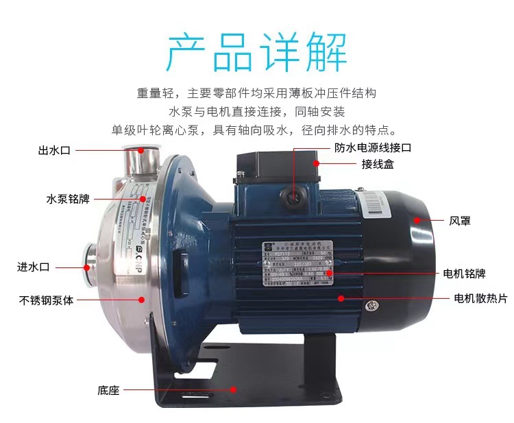 產(chǎn)品說明:南方ms,mss非自吸不銹鋼臥式單級離心泵,主要零部件采用不銹鋼板沖壓結(jié)構(gòu),配加長軸電機(jī),軸向入口和徑向出口。