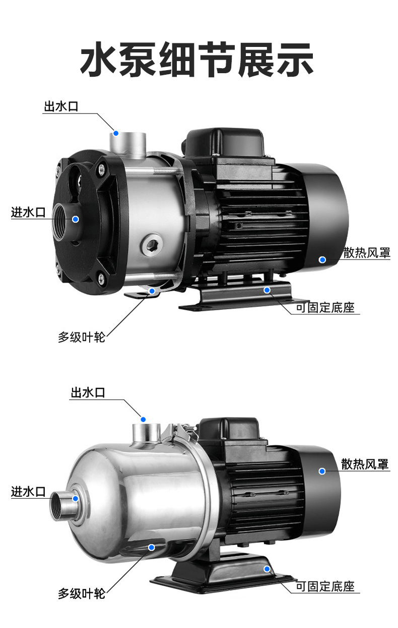 應(yīng)用領(lǐng)域:工業(yè)清洗、供水和增壓、空調(diào)系統(tǒng)、冷卻系統(tǒng)、水處理